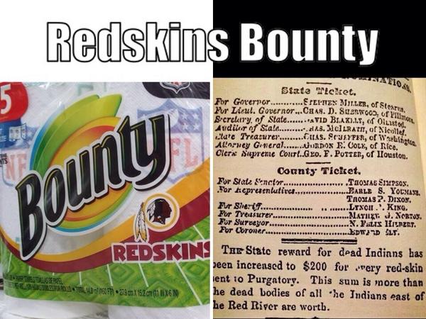 Would you keep buying Bounty paper towels if they were a reference to the bounty put on Native Americans in the early days of this country? No, you wouldn’t. More importantly, you shouldn’t be buying Bounty because they kind of just did that.